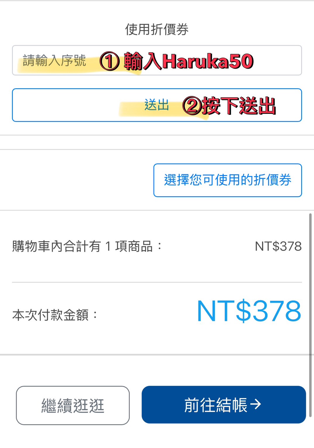 輸入Haruka折價券序號,單筆滿350元折價50元,不限使用次數!文末還有結帳密技唷!