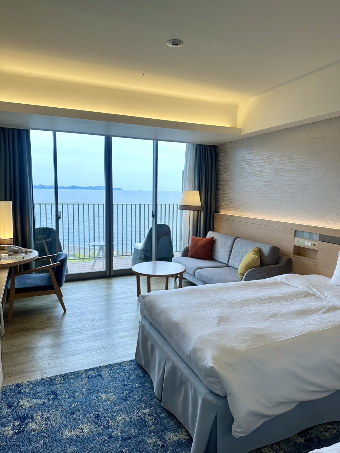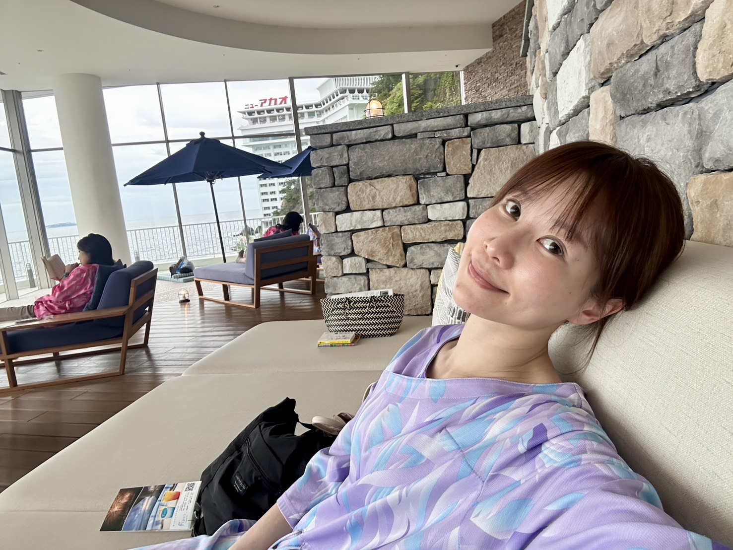 設施內可以盡情耍廢,看海景、滑手機、閱讀。我去的時候,周圍的日本人都在落地窗前閱讀或睡午覺,沒什麼人交談,瀰漫一股放空的氛圍。