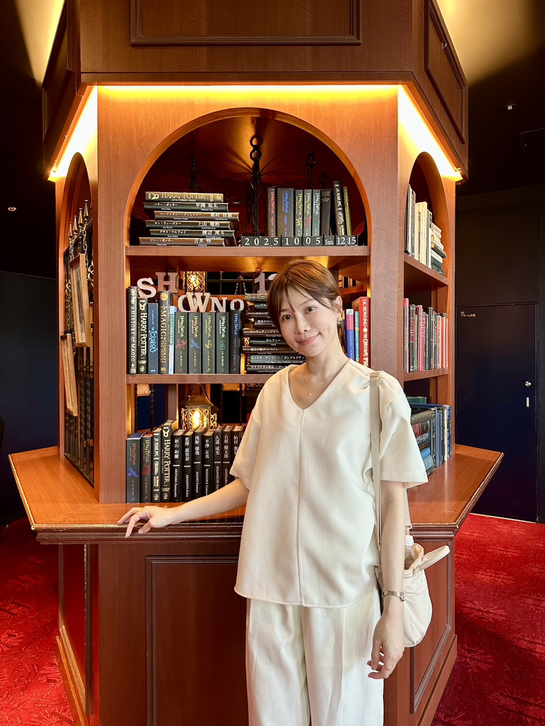 表演廳外的書櫃前有很多人在拍照,我不算一個很愛拍照的人,但看到哈利波特的場景,會難得瘋狂想入鏡幾張。
